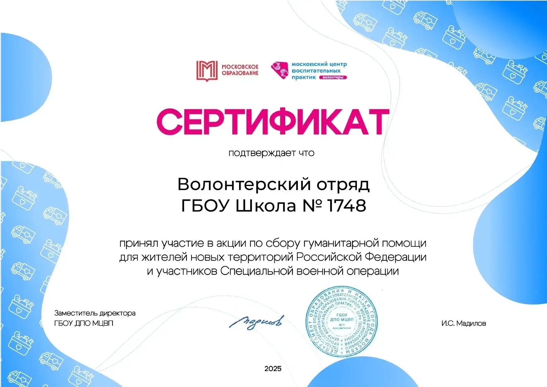 Волонтерский отряд нашей школы принял участие в акции по сбору гуманитарной помощи для жителей новых территорий Российской Федерации и участников Специальной военной операции.