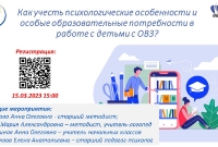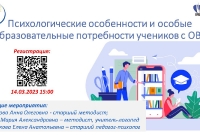 14 марта специалисты Ресурсной школы 1748 Ненахова Анна Олеговна и Калач Мария Александровна провели вебинар для педагогов "Психологические особенности и особые образовательные потребности обучающихся с ОВЗ".